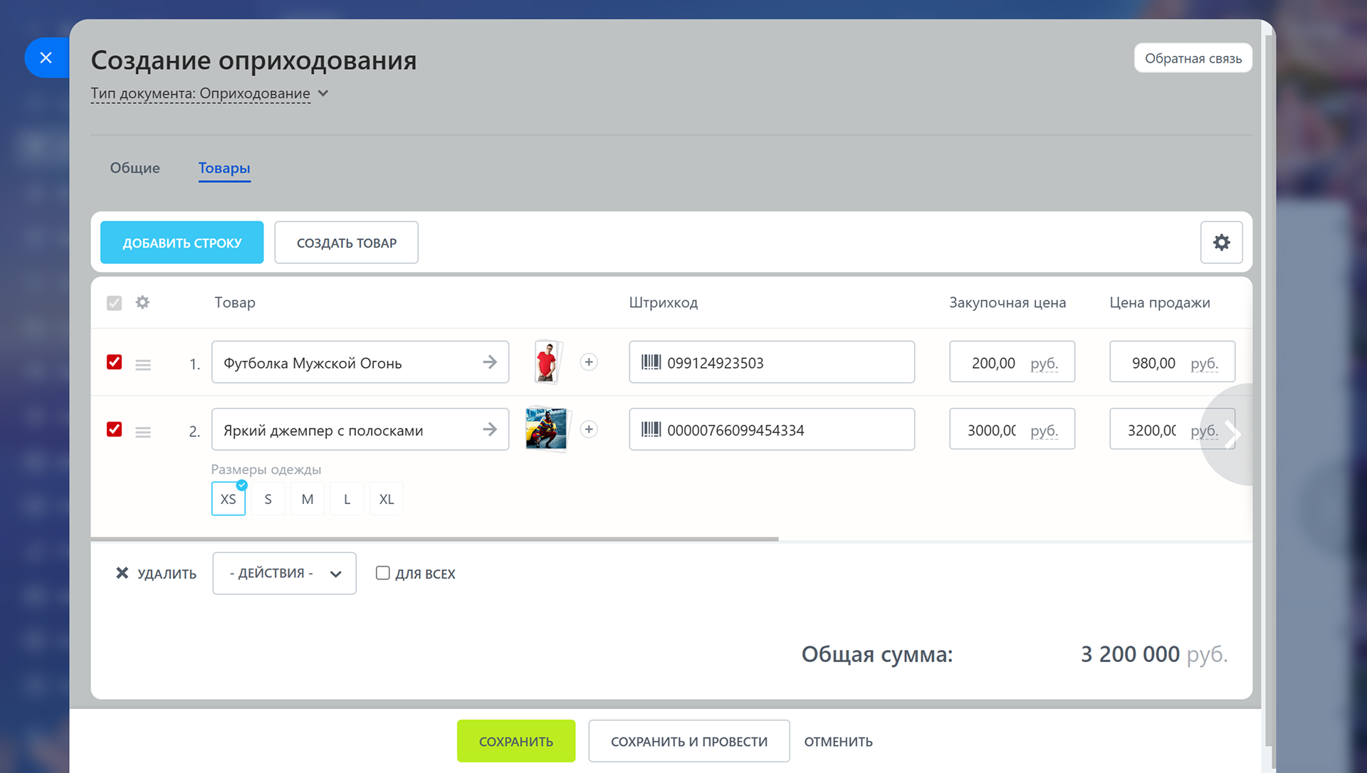 После этого создайте документ оприходования и внесите фактические остатки товаров. В документе укажите, на каком складе находится товар, количество, закупочную цену и другие параметры. Теперь товары будут доступны в едином каталоге, и вы сможете использовать их в работе со сделками и заказами.