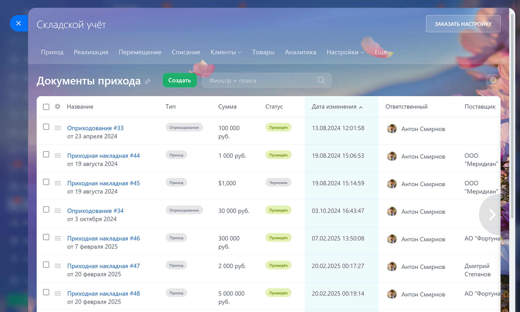 Складской учет делает работу с товарами прозрачной и удобной. Вы всегда видите, где что находится и как движется, что помогает принимать точные решения по закупкам, запасам и продажам.
