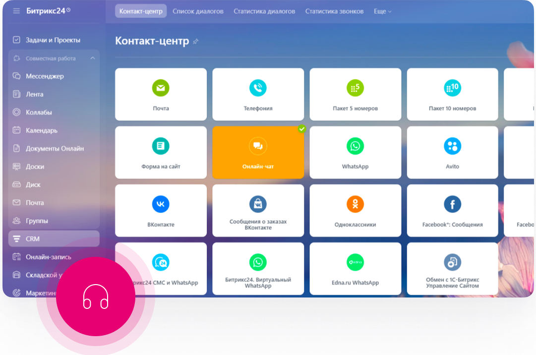 WhatsApp, Telegram, ВКонтакте и другие каналы подключаются к Битрикс24. Вы отвечаете из одного окна, а вся переписка сохраняется в CRM